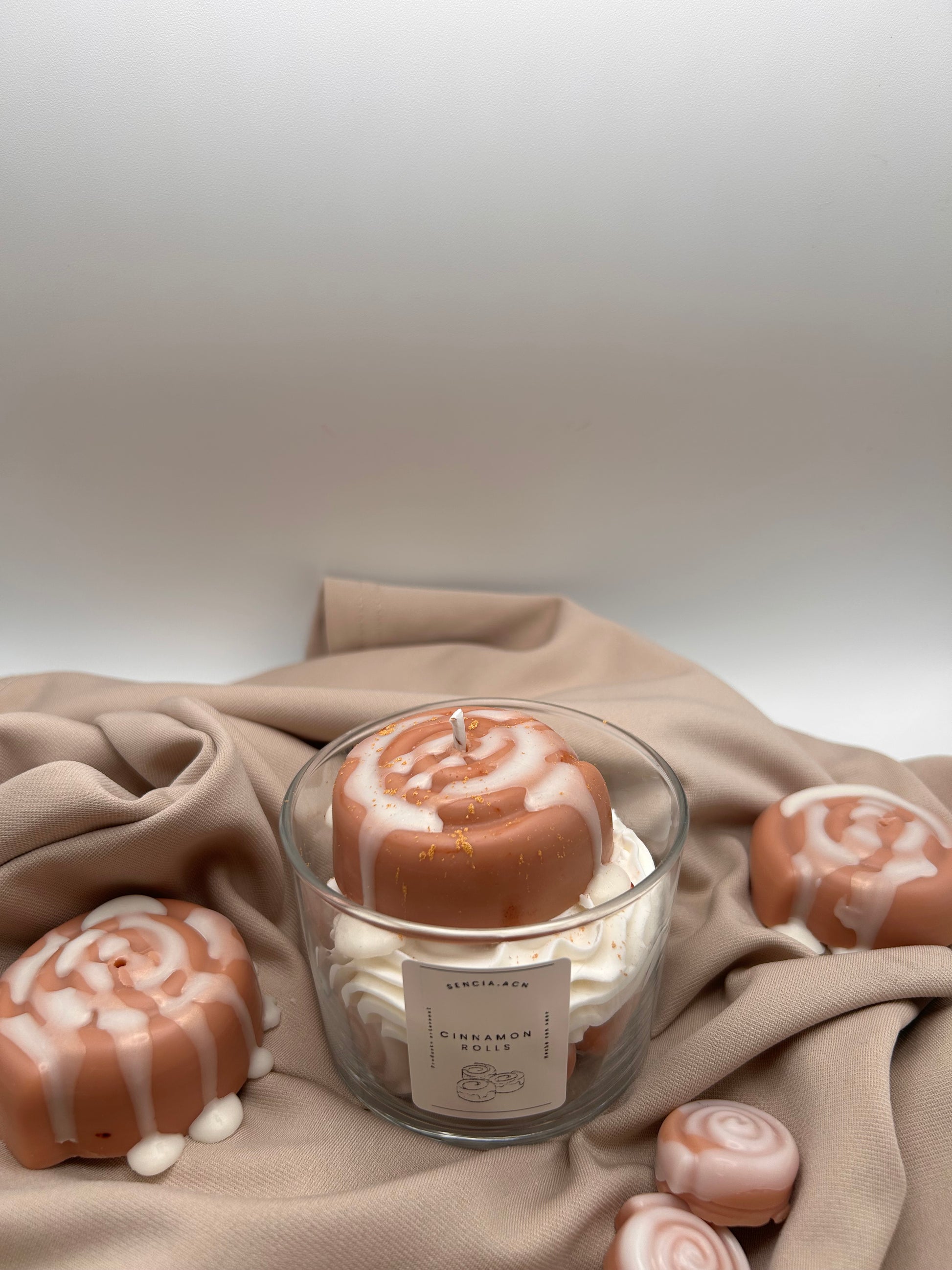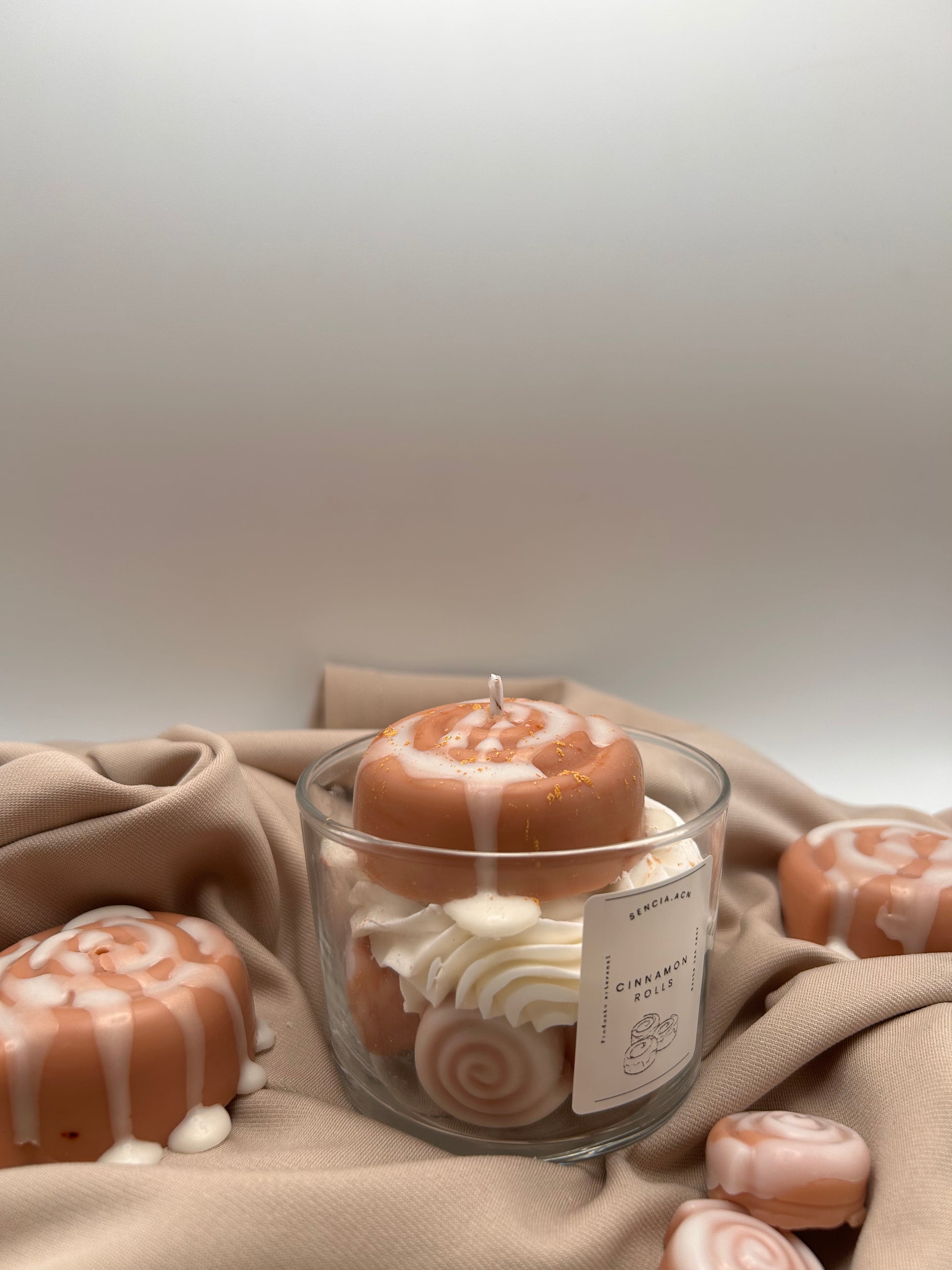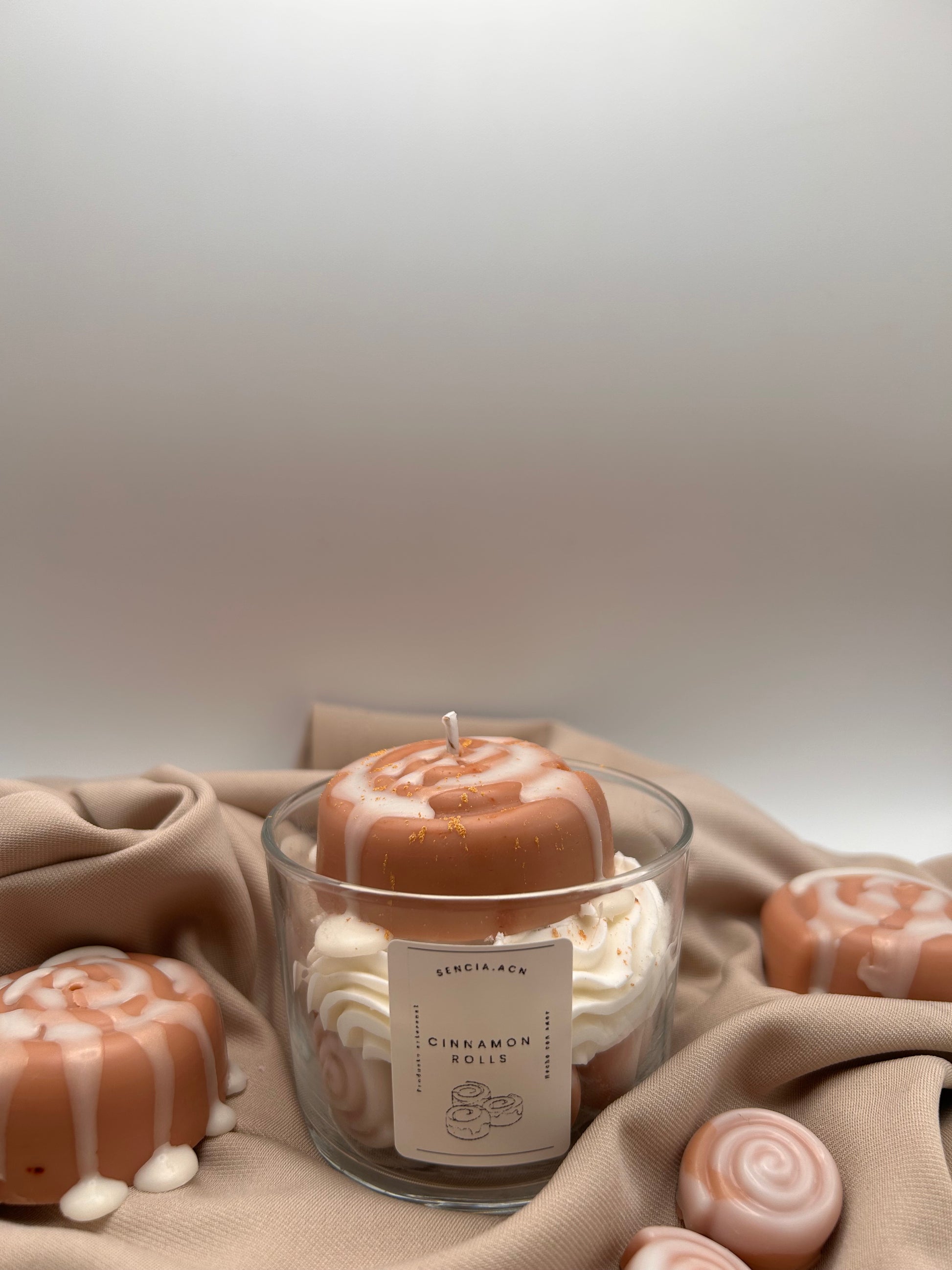 Llena tu hogar con el dulce aroma de los cinnamon rolls recién horneados. Esta vela de vaso, con base de galleta, nata montada y topping decorativo, está hecha con cera de soja 100% natural y libera notas cálidas de canela, azúcar y masa horneada, creando un ambiente acogedor, reconfortante y delicioso.